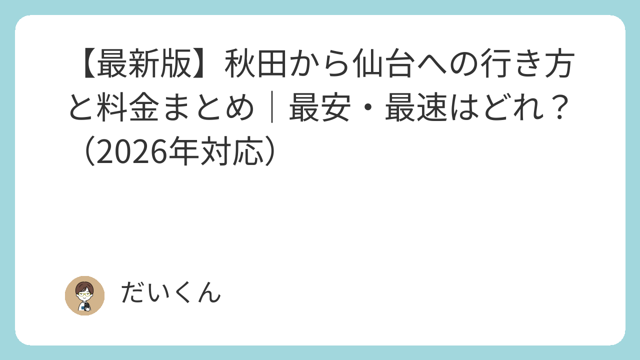本記事では、秋田→仙台の交通手段を料金・時間でシンプルに比較し、