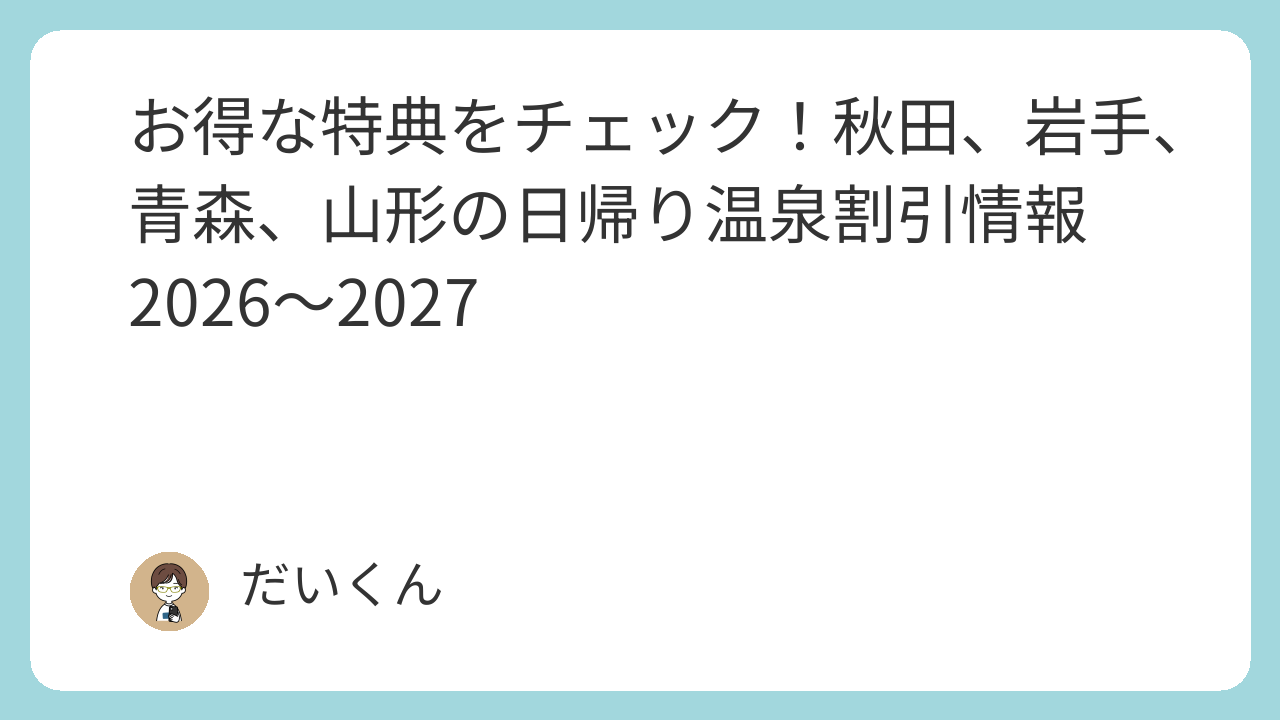秋田、岩手、青森、山形には数多くの日帰り温泉施設があります。そのような日帰り温泉施設をお得に利用できる本が、あきたタウン情報さんから出版されています。各温泉施設で、どのような特典が用意されているのか本記事にてご紹介します。